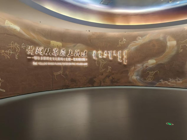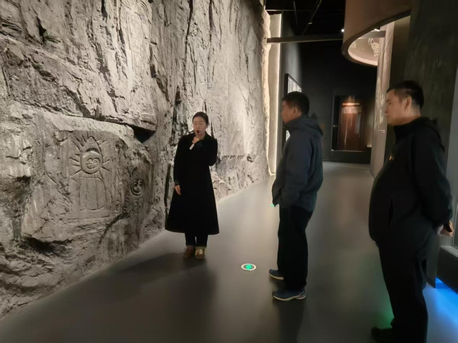 在博物院展廳內(nèi),黨員們循著“黃河從草原上流過——鄂爾多斯歷史文化陳列”的脈絡沉浸式參觀。從“河套人頭蓋骨”見證的遠古文明,到“朱開溝中華第一銅劍”承載的早期冶金技術,從“鄂爾多斯青銅器”展現(xiàn)的草原絲路風采,到VR技術復原的秦直道盛景,文物與科技的融合讓大家直觀感受了黃河文化、草原文化與農(nóng)耕文化在鄂爾多斯的碰撞交融 。在“桌子山太陽神巖畫”等文物前,黨員們駐足細品,深入了解鄂爾多斯地區(qū)在多民族交往交流交融中的重要歷史地位,進一步堅定了文化自信。